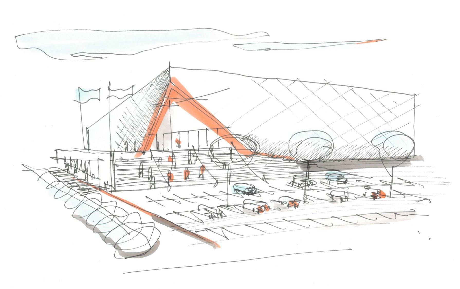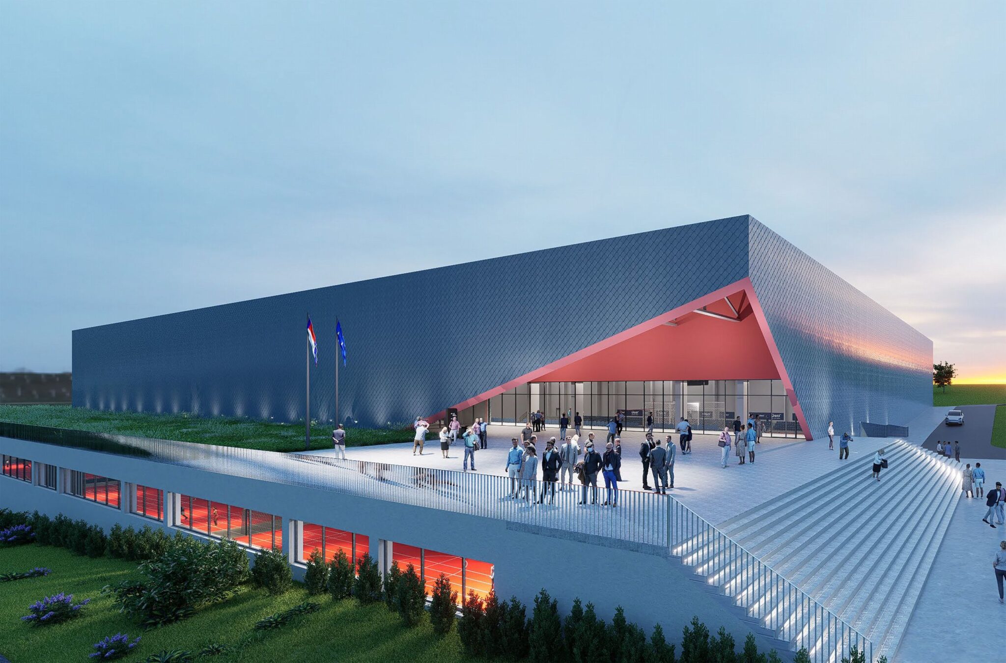 Racionální monolit s dynamickým nárožím – nová sportovní dominanta, která dává místu jasnou identitu