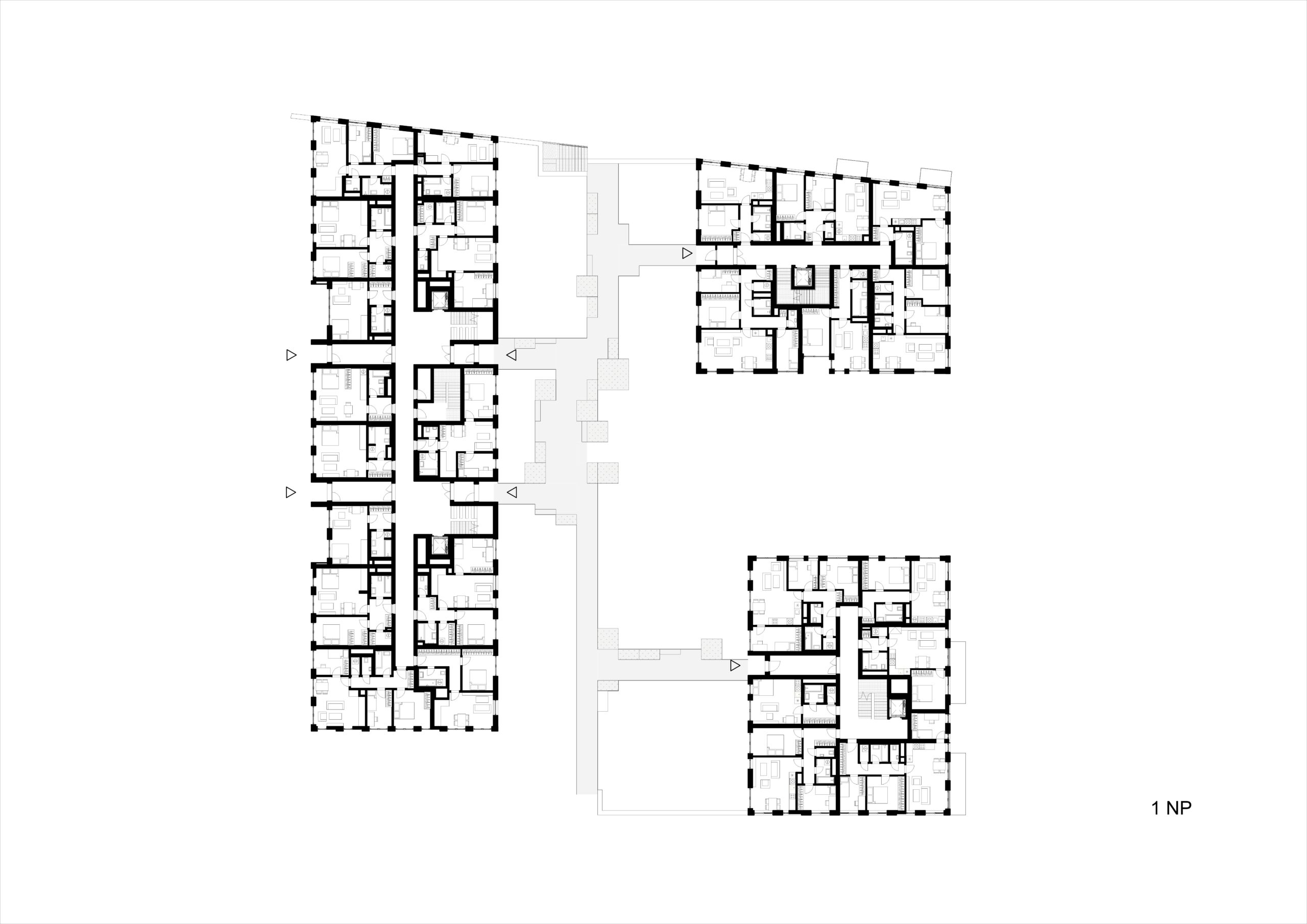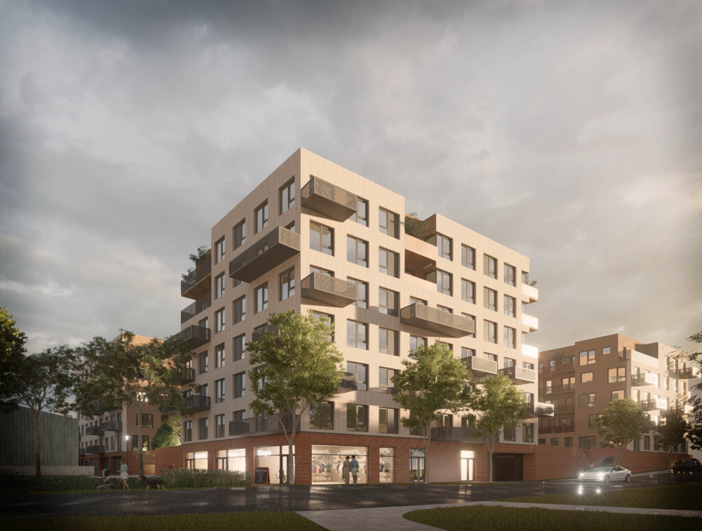 Architektonický návrh zástavby na pozemku bývalých stavebnin řeší skloubení bytové výstavby a optimálního propojení území. Vznikají 3 hmoty domu. Podlouhlý kvádrový objekt a dvě věže. Trojice hmot je seskupena kolem polosoukromého dvora, který je navržen jako přívětivý mikrosvět budoucích majitelů bytů, ale zároveň by měl umožňovat snadný pohyb a prostupnost územím. Do dvora jsou orientovány předzahrádky, ale je počítáno i s komunitními zákoutími například pro pikniky a grilování.