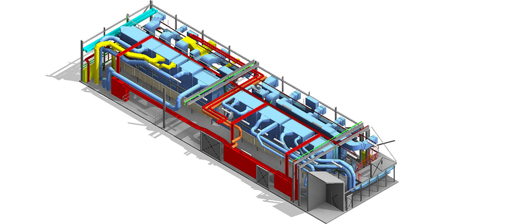 V první fázi projektu bylo provedeno 3D zaměření objektu a základní fotodokumentace. Proběhlo základní zaměření stavební i technologické části. Následně pak byl v aplikaci Autodesk Revit Architecture vynesen stavební objekt a v aplikaci Autodesk Revit MEP technologické vybavení.