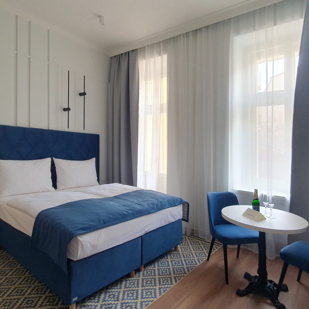 Studii a stavební povolení jsme na konci roku 2021 úspěšně projednali a předali v deskách s nabytím právní moci. Projekt zahrnoval umělecko architektonický průzkum, rozsáhlé sondování i pozvednutí technického zařízení budov na moderní standard. Díky pozvánce klienta jsme mohli nedávno vyrazit na prohlídku. Objekt je klimatizován a rekuperován, vybaven výtahem, balkony a repasí schodiště, repliky oken i dveřním supraportem. Restaurace s kuchyní v parteru je zatím nerealizovaná. Užívání bytové části domu již bylo zahájeno. Až bude v provozu restaurace, tak objekt na frekventovaném náměstí plně ožije.