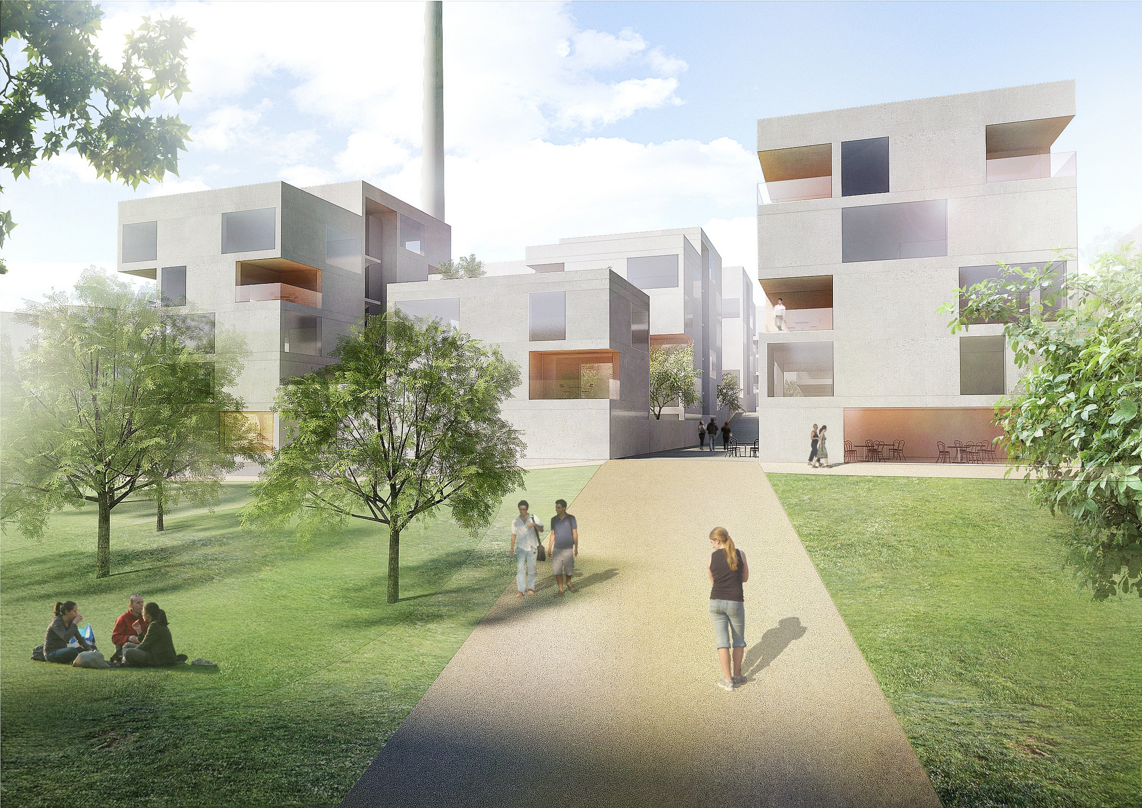 Koncept klade důraz na zvolení správného měřítka jednotlivých objektů a rozlišení veřejných a soukromých ploch. Celou platformou rovnoběžně s Radlickou prochází ulice přístupná pěším, na které jsou umístěna dvě náměstí se službami. Kavárny, restaurace, drobné služby, ale případně i školka vytvoří příjemné klasické městské bydlení. Tímto způsobem je také jasně definován veřejný prostor.