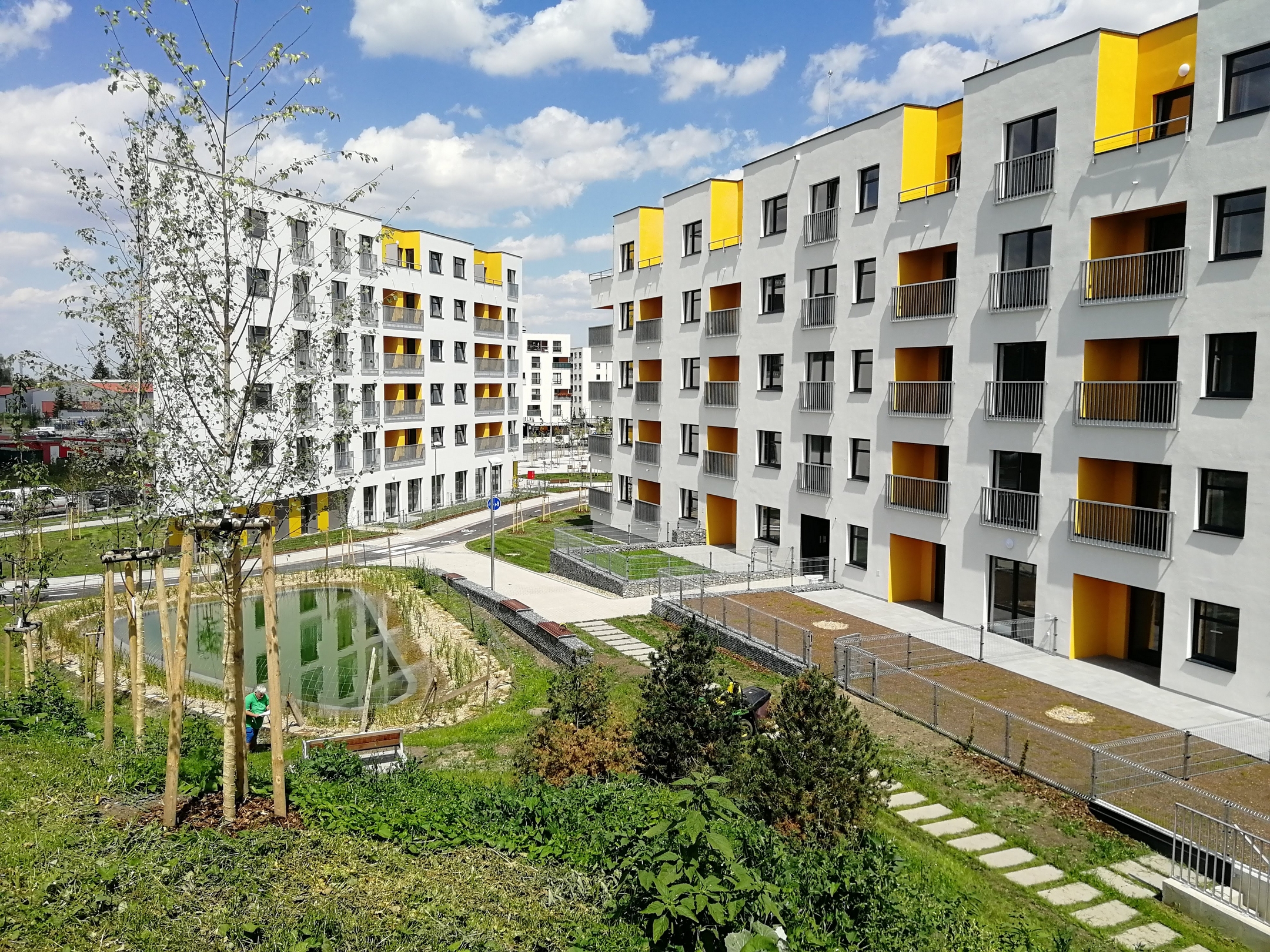 Úspěšně jsme zkolaudovali další etapu souboru v Uhříněvsi. Do dvou stovek bytů se začnou stěhovat první majitelé na konci tohoto roku. Vyjma kvalitního bydlení na ně čeká náměstí lemované obchodními jednotkami, nový úsek cyklostezky a jezírko se zalesněným valem. Součástí stavební etapy je velké množství zeleně, která – věříme – přispěje k příjemnému mikroklimatu místa.